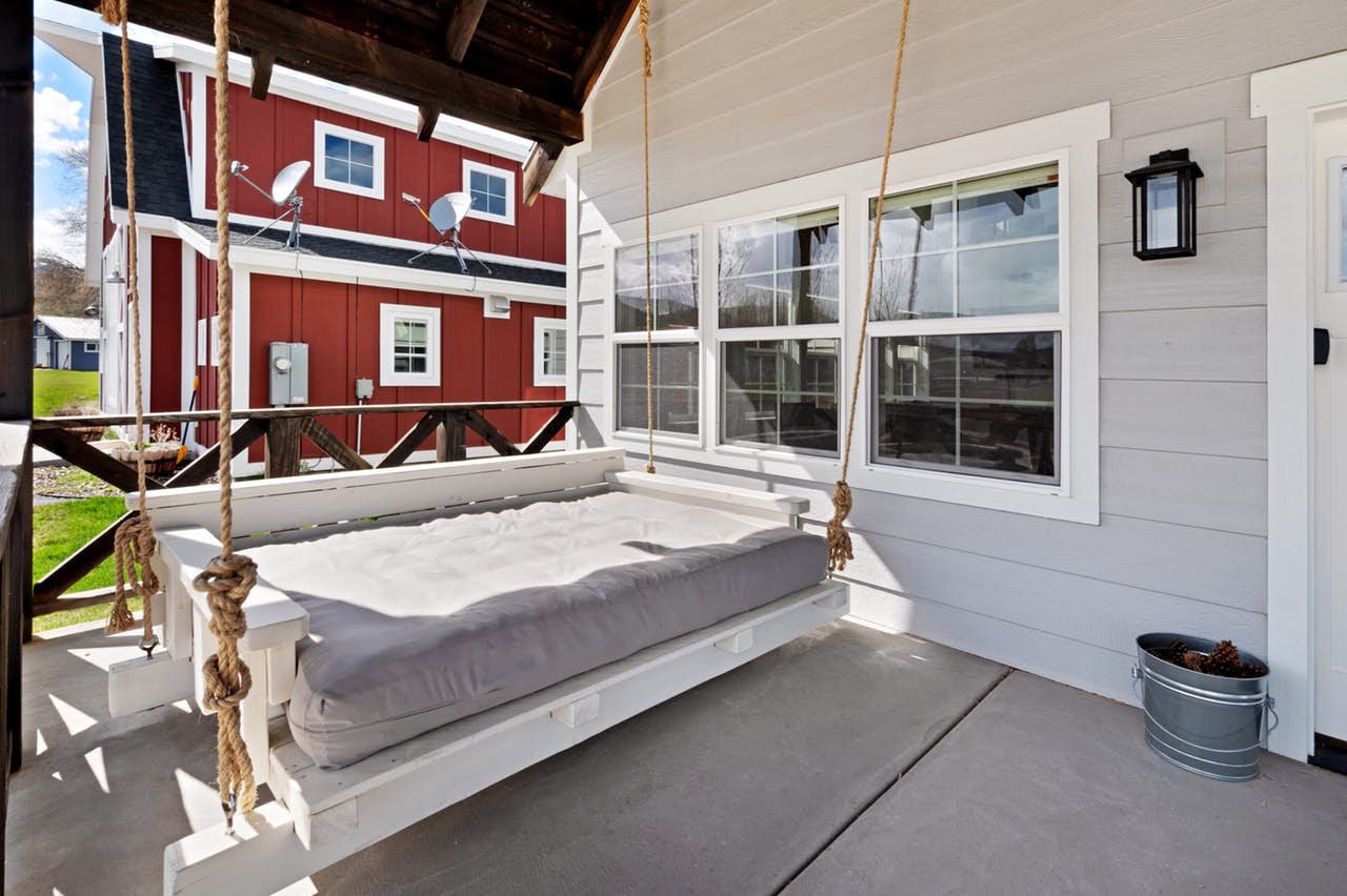 ...Cedar Farmhouse-Porch swing by front door (SW)